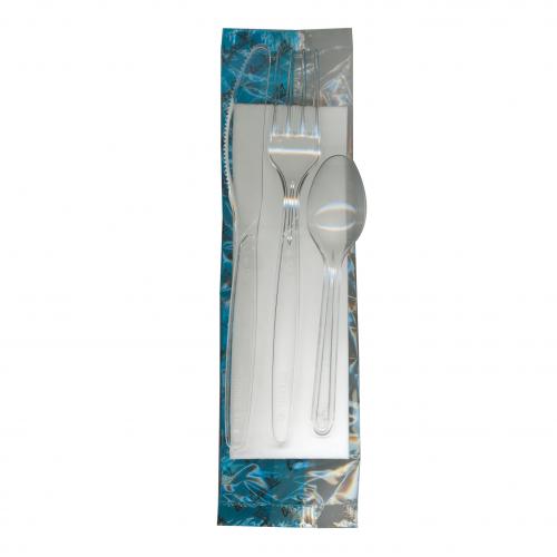 4 in 1 Wrapped Meal Pack Cutlery Kit - Clear Sunlite Knife, Fork, Teaspoon & 2 Ply Napkin (200)