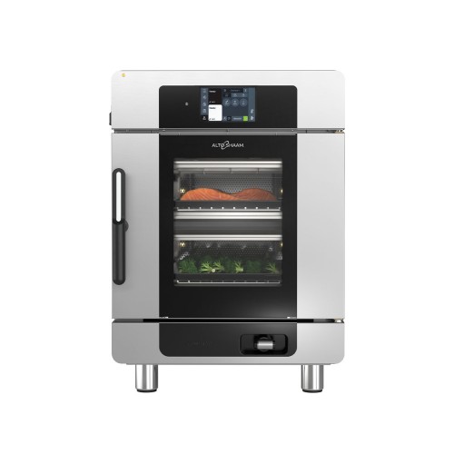 The CMC-H2H SX Alto-Shaam Deluxe Control Converge 2-Shelf Multi-Cook Ovens combines the flexibility of a multi-cook oven, the power of Structured Air Technology and versatility of combi cooking in each oven chamber. With these technologies combined, production capacity is increased without increasing labour.