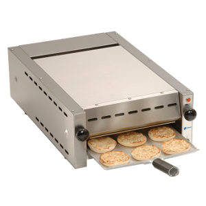 This unit also features an energy conservation mode that reduces power when the toasting chamber is empty. A partial load switch also allows operations to easily toast less than a full batch of English muffins during non-peak hours without wasting energy.