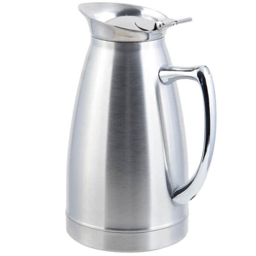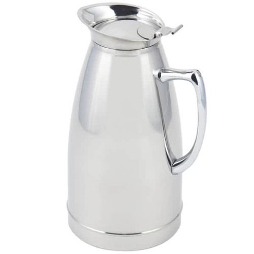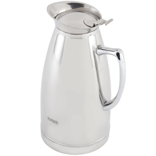 Whether serving complimentary breakfast at your hotel, catering an event, or providing fine table service to your patrons, this Bon Chef 4054DECAF 48 oz. (1.5 qt.) insulated stainless steel server is sure to impress! Great for pouring milk, cream, and coffee, its insulation keeps your drinks piping hot or pleasingly cold. This elegant server is made of durable stainless steel with a sleek, reflective finish that complements any decor. It includes a crest that reads decaffeinated to easily identify its contents among your other servers. Easy cleaning and easy refilling lends quality service to satisfy your guests.
