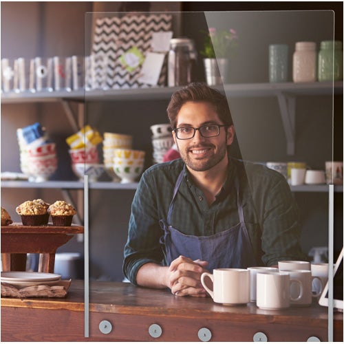 Bon Chef Acrylic Safety Shields are the instant pop-up solution for retail checkout lines, hotel reception and any other interactive activities. Featuring an optically clear sleek design, these shields provide convenient and practical protection. Support and strength are enhanced by a 24” stainless steel channel.