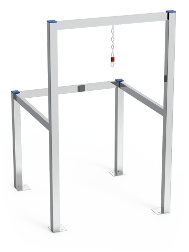 It is provided with a chain for securing the first trolley as well as all the fixing screws to the ground.