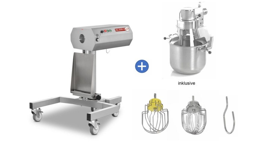 • with 40-liter stainless steel mixer (UP 40), stainless steel tools such as whisks, beaters, and dough hooks