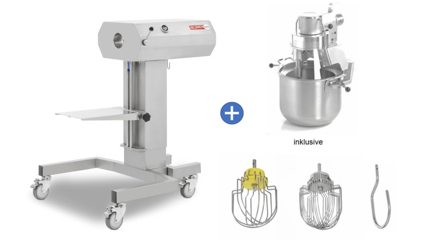 - with 40-liter stainless steel mixer (UP 40), stainless steel tools such as whisks, beaters, and dough hooks