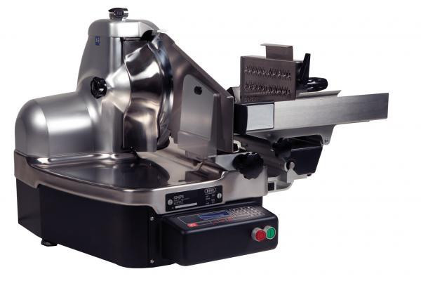 Blade: Ø 296mm Blade speed: 280 RPM Special hard, chromium-plated circular blade Available in s/s, Teflon version and as a serrated model Thickness 0 – 5 mm, infinitely adjustable adjustment: