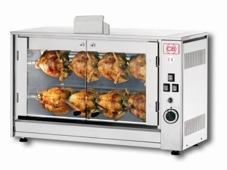 CB E8P-S2 electric rotisserie, compact design can sit on work top - Single spit action, can be used to cook a variety of products, chicken portions, meat joints, vegetable etc by simply changing the type of spit used.