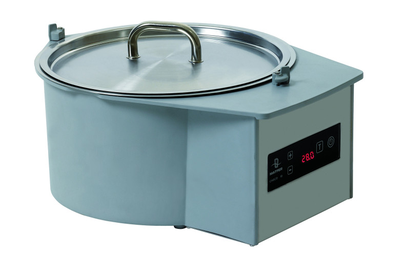 Compact dipping machine, perfect for making chocolate-dipping sweets, its round shape makes mixing chocolate easy. Made from grey composite material,stainless steel flat bottomed round bowl.
