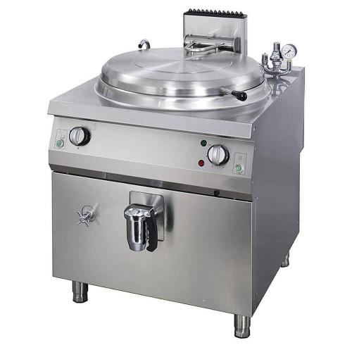 - Round monoblock boiling pan suitable for cooking, sautéing and poaching