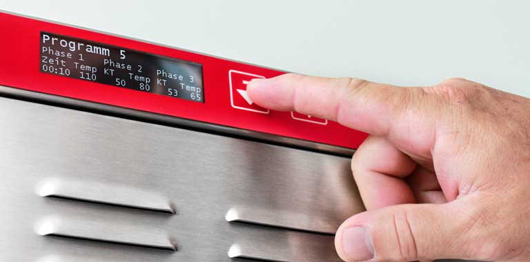 Tired of working late nights? Would you like to avoid annoying power peaks? Looking for ways to maximize meat quality? The Hold-o-mat is the answer to all your wishes, because the slow-cooking and warming device is the world market leader in terms of temperature accuracy, dehumidification and quality improvement of the food. Modern cooking systems such as cooking "overnight", quality-improving keeping warm or cook & hold can be perfectly implemented with the Hold-o-mat.