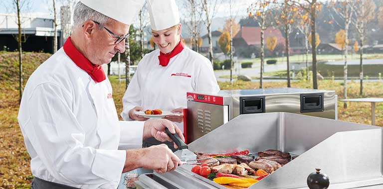 The menus prepared in the kitchen can be transported in the hold-o-mat and served warm.From the Hold-o-mat directly to the guest. The easily foldable carrying handles ensure optimum carrying comfort from the kitchen to the serving station.