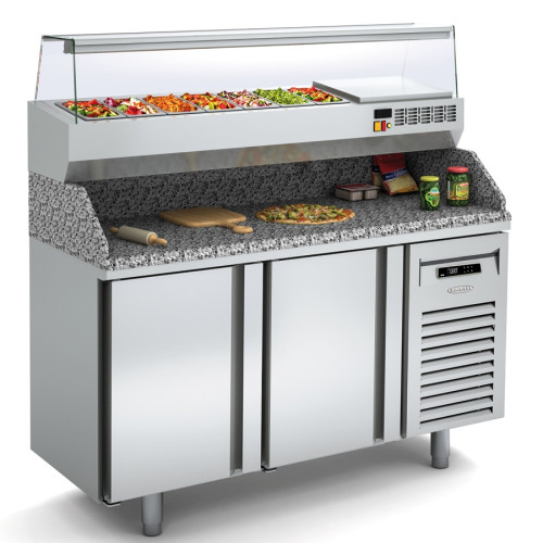 Cold Table GN 1/4 Pizza Preparation Granite Worktop with Ingredient Display Range 600 MP-60-250-R Docriluc