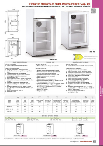 The exhibitor has a capacity of 380 litres. It works with a temperature range of +0º/+7ºC and a maximum of +32ºC in the environment . With digital temperature control and defrost.
