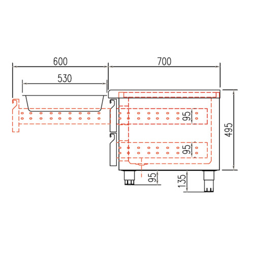 Removable refrigerated stainless steel drawer units on telescopic stainless steel guides, self-closing system as standard