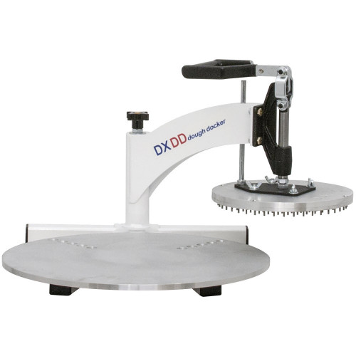 Docking dough is an important step to both prevent oil absorption and to prevent crust from separating and bubbling. Now docking dough has been made easy. From DoughXpress, the manufacturers of the PizzaXpress line of pizza dough presses, comes the DXDD Dough Docker. Now docking pizza dough is as quick and easy as pressing dough. The DXDD is available with interchangeable 8″-18″ docking platens for docking up to an 18″ pizza.