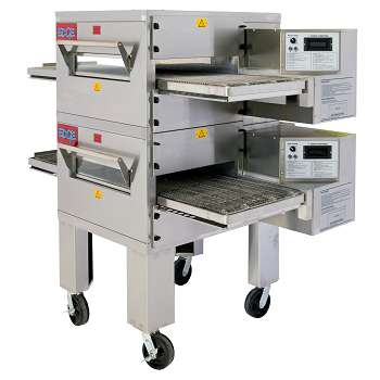 EDGE 1830 Conveyor ovens are designed to be stacked up to three high. Each oven has a 18” wide conveyor belt and a 30” long baking chamber. These ovens can usually be installed under a standard 48” make line hood.Portable & Scalable: