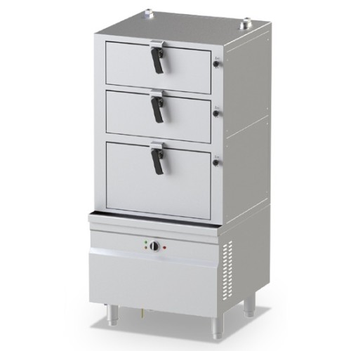 Electric steam cabinet with three decks. Equipped with high-efficient