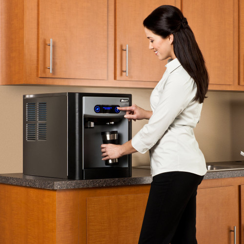 - The sleek and attractive 7CI100A-IW-CF-ST-00 7 Series Countertop Ice and Water Dispenser from Follett is ideal for serving 25-30 people in offices, break rooms, and other commercial settings