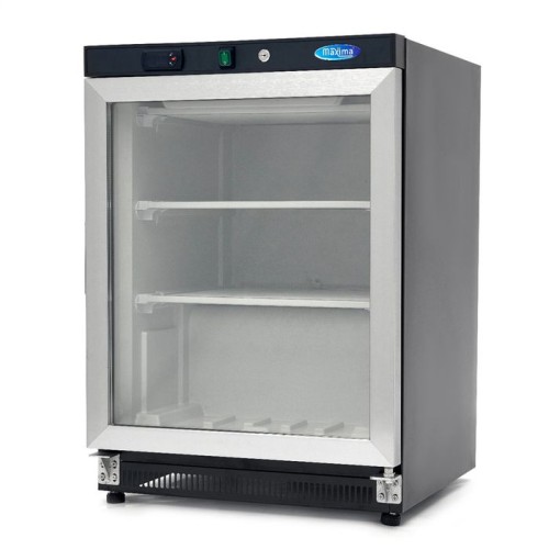 This professional freezer has a gross capacity of 200L to store frozen products. With its compact size, this black freezer fits seamlessly into most professional kitchens. It features two fixed shelves that provide sufficient storage space. The shelves are designed in a grid pattern to enhance ventilation. The glass door includes a lock which allows you to view the frozen products without opening the fridge.