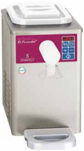 Air regulator guaranteeing an ideal consistency of Chantilly cream. Continuous refrigeration system from the tank to the spout: maximum safety in terms of hygiene, no cream run-off at the spout. Refrigerant gas R134a. Tray capacity 5 liters. Power 0.4 kW. 230/1 / T power supply. Dim. (W x D x H) 250 x 435 x 400 mm