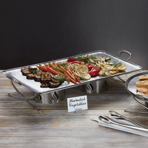 Keep exotic fajita ingredients, hearty breakfast foods, and mouth-watering sandwiches warm with this American Metalcraft G30 30 3/4" x 16 1/4" large rectangular hammered stainless steel griddle. This attractive griddle features two handles for safe, effortless carrying from kitchen to the buffet, and back again. A hammered stainless steel finish provides a strong, easy-to-clean surface that hides everyday wear and tear, while the ample size ensures it will fit right in on your buffet or catering line.