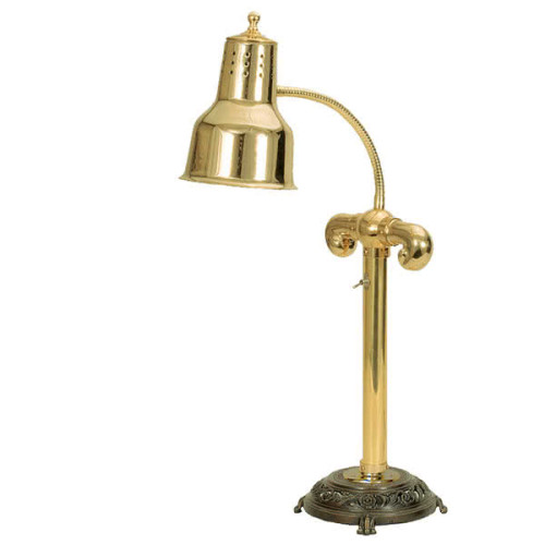 Bring classic, elegant style to any warming display with the Hanson Heat Lamps SLM/RB9-ANT single bulb flexible freestanding heat lamp. This lamp is mounted on an attractive, 9" round antique style base that adds a classic element to any establishment. It's perfect for use at your restaurant, hotel, buffet, or anywhere else you need to warm and display delicious food!