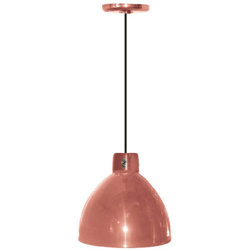 Create an inviting atmosphere and let customers know you have delicious, warm food ready with the Hanson Heat Lamps 800-C-BCOP ceiling mount heat lamp! This lamp features an 11 1/8" diameter rounded shade with a durable, heavy gauge aluminum body. Its attractive bright copper finish provides your establishment with a sleek, modern touch, and a clear enamel topcoat prevents tarnishing and reduces the need to polish the lamp's surface.