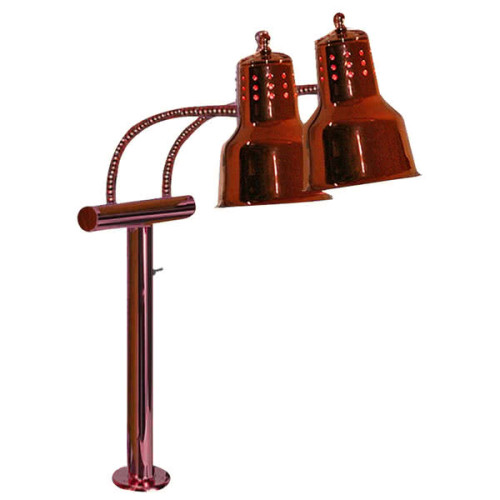 Warm and display your freshly cooked dishes with style and ease thanks to this Hanson Heat Lamps EDL/FM/BCOP dual bulb flexible mounted heat lamp! Great for use at your buffet, catered event, or banquet hall, this heat lamp ensures your prepared foods taste warm and fresh for all of your guests. Its durable, stainless steel body and fittings and aluminum lamps ensure long-lasting use in your establishment, while its attractive bright copper finish provides a classic, professional look. Plus, its clear enamel topcoat prevents tarnishing and reduces the need to polish the lamp's surface.
