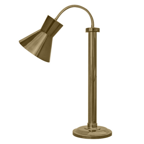 Warm and display delicious food with style and ease thanks to the Hanson Heat Lamps SLM/300/ST TXT BRSS textured brass streamline style flexible single bulb heat lamp! Boasting a subtle textured finish for added visual appeal, this streamline, modern lamp is perfect for use at a contemporary buffet or catered event where you need to keep quality food items warm. Since it's extremely portable, it can be placed over any product, such as meat at a carving station, vegetables in steam pans, or to keep baskets of bread crisp and warm.