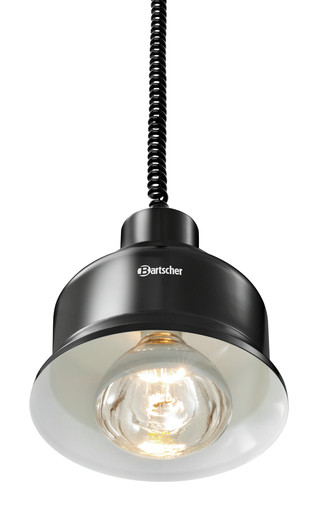 Infrared heat with flexibility - Heat lamp with pendulum lifting system for keeping food warm as required.