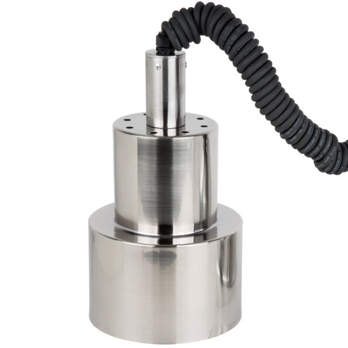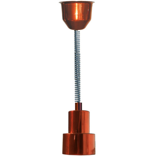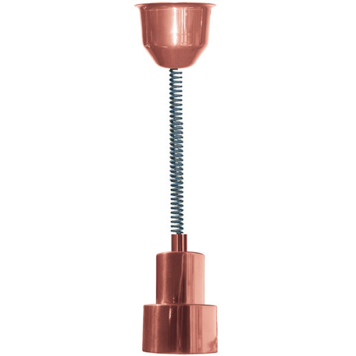 Create an inviting atmosphere and let customers know you have delicious, warm food ready with the Hanson Heat Lamps 200-RET-SS decorative retractable ceiling mount heat lamp in an attractive stainless steel finish! The body of this lamp is made of heavy gauge aluminum, and it has a clear enamel topcoat that reduces tarnishing and the need to polish its surface. This lamp features a 5 1/2" diameter square-style shade that adds a modern touch to any decor, and is mounted on a retractable cord so you can position it at the exact spot you desire. Its ceiling mounted design means that there are no wires on the ground, eliminating a potential safety hazard. Plus, an on/off switch and a 250W Teflon® coated infrared heat bulb is included for maximum convenience and safety. In the event that your bulb breaks, the Teflon® keeps the shards contained, preventing the shattered glass from spreading everywhere. This heat lamp requires a 115V electrical connection.