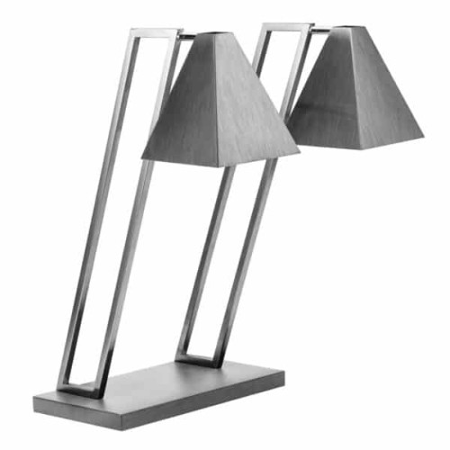 Complete your carving and warming station with the Rosseto Double Black Matte Pyramid Heat Lamp with Metal Base.