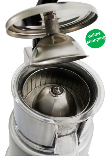 - Citrus and orange press equipment with lever: Juice bowl with spout in plastic, press element consisting of sieve and press cone (1 size) together in stainless steel