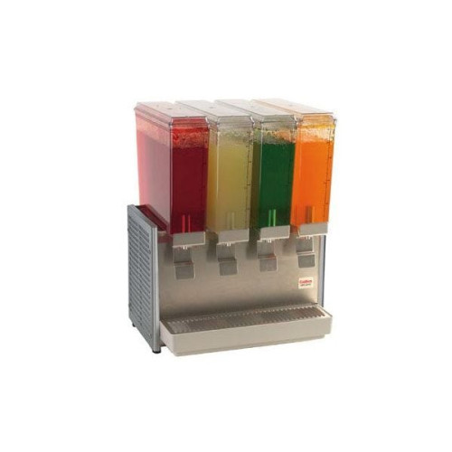 The Grindmaster E49-3 Beverage Dispenser is a compact unit that's perfect for drip-free dispensing, eliminating clean-up hassles and sticky countertop spaces. Use this state-of-the-art dispenser for displaying four of your most popular beverages all at once, with agitators included in every unit to ensure products are dispensed fresh and foam-free. This cold beverage dispenser has superior engineering that quickly cools your beverage and keeps it cool to the last drop for easily refreshing your customers.