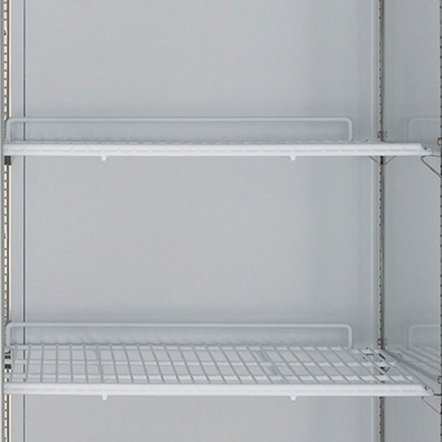 - The cabinet is equipped with 3 heavy-duty fully adjustable and easy to clean PE coated wire shelves which can hold full size sheet pans and provide up to 23 Cu. Ft. (651L) of storage