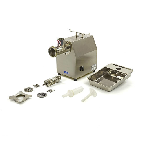 When working with food in the kitchen, good hygiene is essential. This professional mincer is really easy to clean. The entire grinding section can be removed in one go to facilitate cleaning. All separate parts are dishwasher safe. Make sure that once everything is clean, the parts are dried before you put them back in the machine. In addition, the meat mincer is equipped with rubber feet so that it remains stable in place while you are grinding.