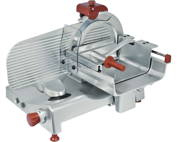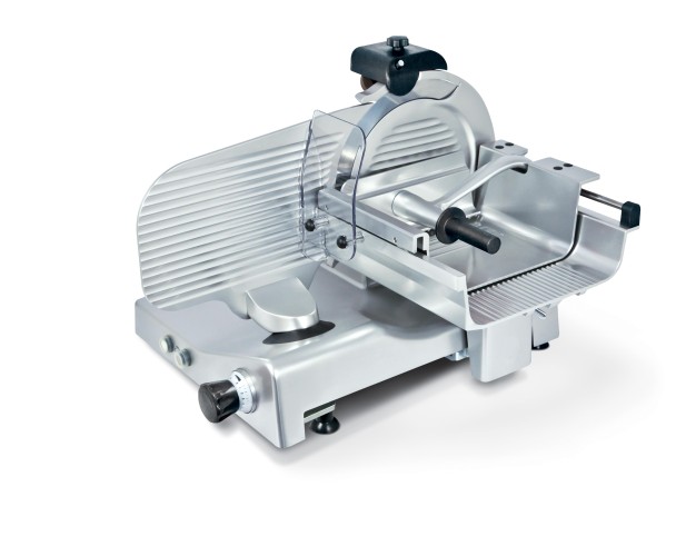This slicer is the best solution to slice delicatessen, roast-beef and any kind of cured meats, assuring an easy, safe and time-saving use. We offer to deli-stores, grocery stores, food departements, industrial kitchens, food carts a slicer with huge performances in small places, excellent sliding and handling. The new materials are shock, corrosion and scratch resistant and they are able to guarantee the best hygienic safety. It is strong, efficient and skilled and it lasts for long keeping always its safety.