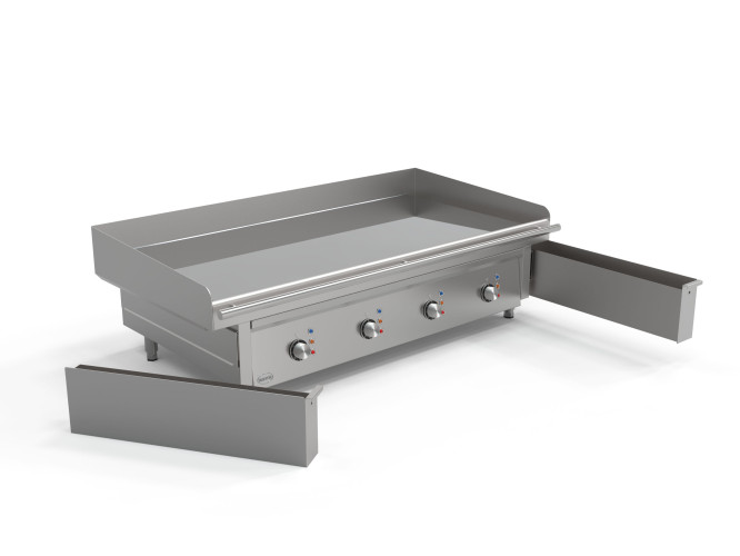These thermostatically controlled heavy duty chrome griddles are ideal for fast food operators, mobile trailers and front of house cooking.