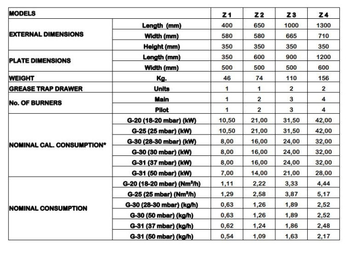 • Each burner is individually thermostatically controlled for each 300mm of cooking area - up to 340°C.
