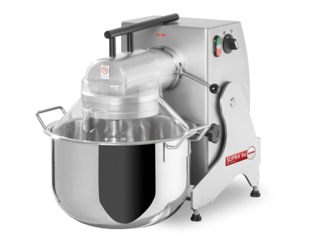 For medium to large businesses preparing approximately 50 to 200 meals daily. The SUPRA 6e is a powerful universal food processor with a 15-liter mixing bowl. Additional stainless steel cutting tools, such as extra-large diameter discs (210 mm) and a dicing tray, are available as accessories for this food processor.