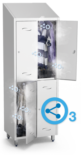 You can attach our 150 mg/h ozone kit to any of our cabinets or lockers to disinfect your clothes with ozone.