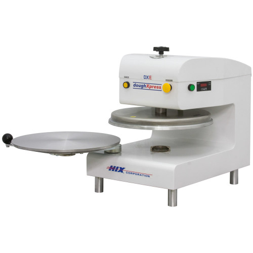 The DoughXpress DXE-WH pizza dough press lets you flatten dough balls into pizzas up to 18" in diameter, without the need for flour, dough rollers or skilled labor! Simply set the time, temperature and thickness, and the press does all the work. Its heated upper platen helps your dough balls flatten faster, or you can use it without heat for cold pressing. Thanks to its electromechanical operation, you won't need to worry about hydraulics or accessory air compressors, for space savings and maximum efficiency.