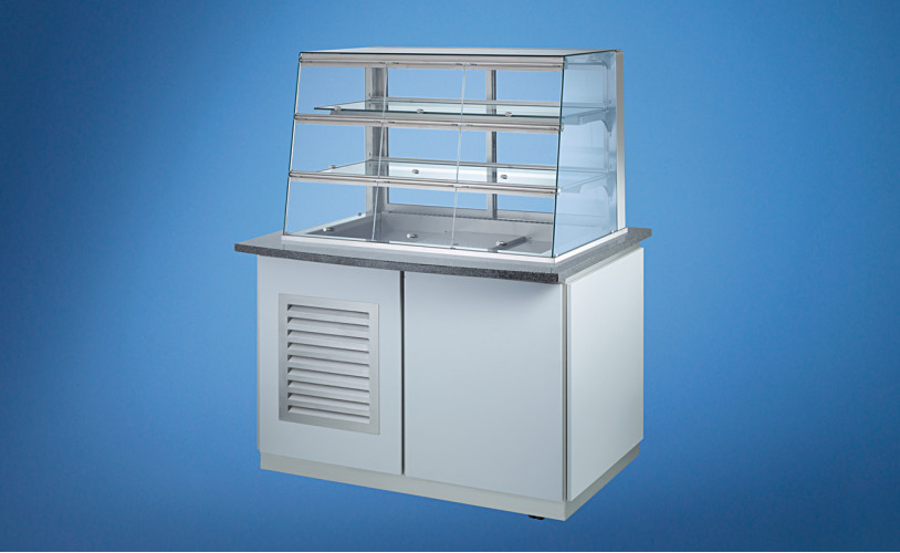 Profit-Line 95000 – Food counter, Circulating air cooling vitrine with self-service flaps with Substructure