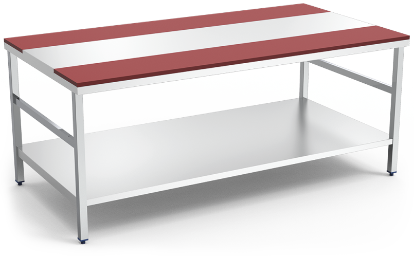 Quartering table red fibre with shelf1500x1050x850 mm.