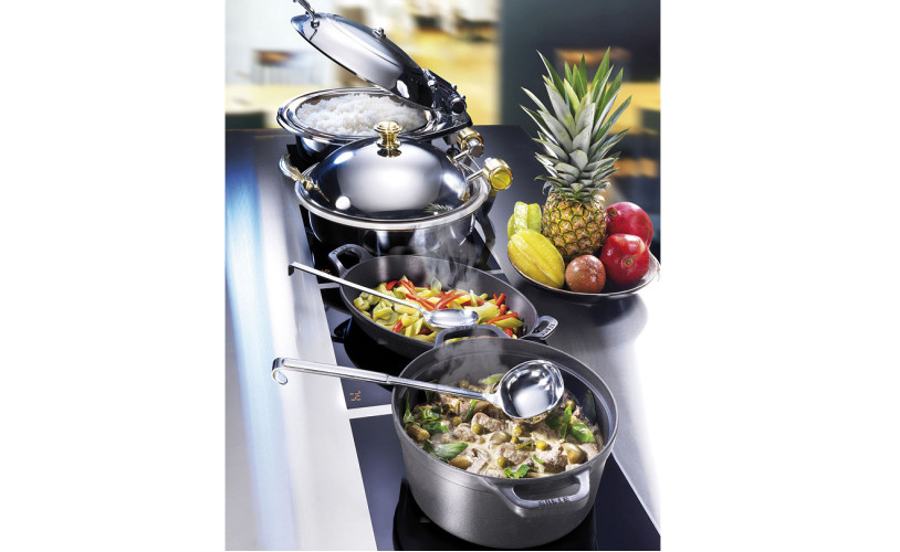 Induction heater for keeping food warm with chafing dishes. Stepless, degree-precise and electronically controlled temperature control from 50 to 100 ° C.