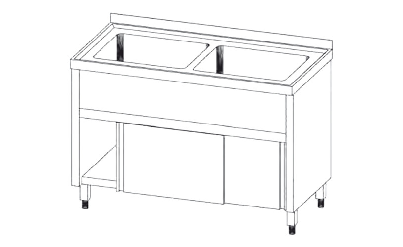 Sink unit with 2 basin and sliding doors, basin size 600 x 600 x 300, Height 850 mm