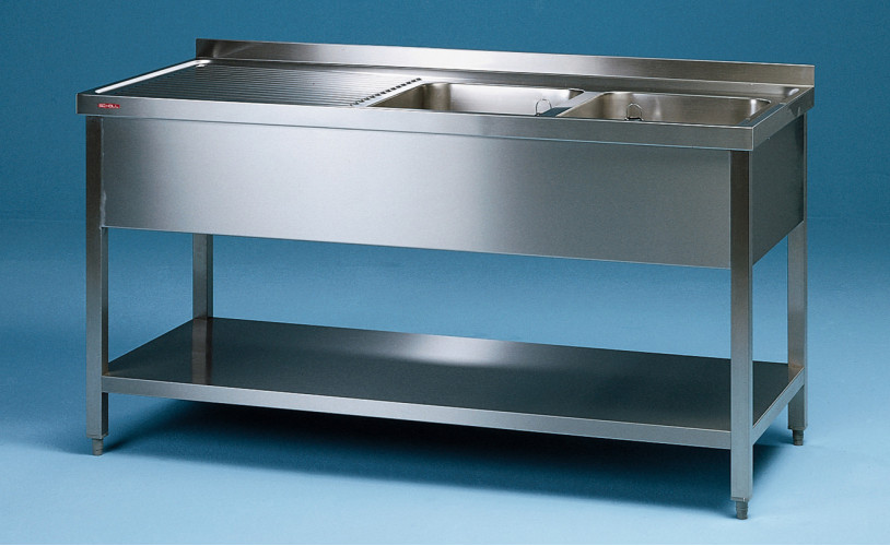 Sink unit with 2 basin right, basin size 500 x 500 x 250, with base shelf,Height 850 mm