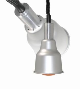 with strong heat lamp, ideal kitchen to hold dishes and cooked dishes in temperature. This simple, modern professional heat lamp equipped with a switch and a spiral cable for easy adjustment of the heat source with respect to food, keeps food warm without drying. infrared warm food only (about 110 ° C to 35 cm from the lamp) and not the air. Aluminium brushed finish infrared bulb red 250W / Off switch adjustable spiral cable (70 to 180 cm)