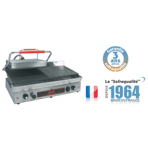 Thanks to its temperature of 350 ° C restored by the lower and upper plates, the meat is captured instantly and retains all its softness. For example a thick Chateaubriand can be served bleeding and warm inside. This grilll is equipped with 2 tripolar thermostats which ensure a perfect regulation, thus saving energy .