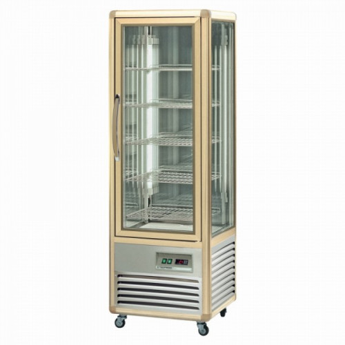 Tecfrigo cake fridge with 3 shelf options, wire, glass or rotating glass. Supplied with 5 shelves as standard and fitted with castors for easy movement and cleaning.
