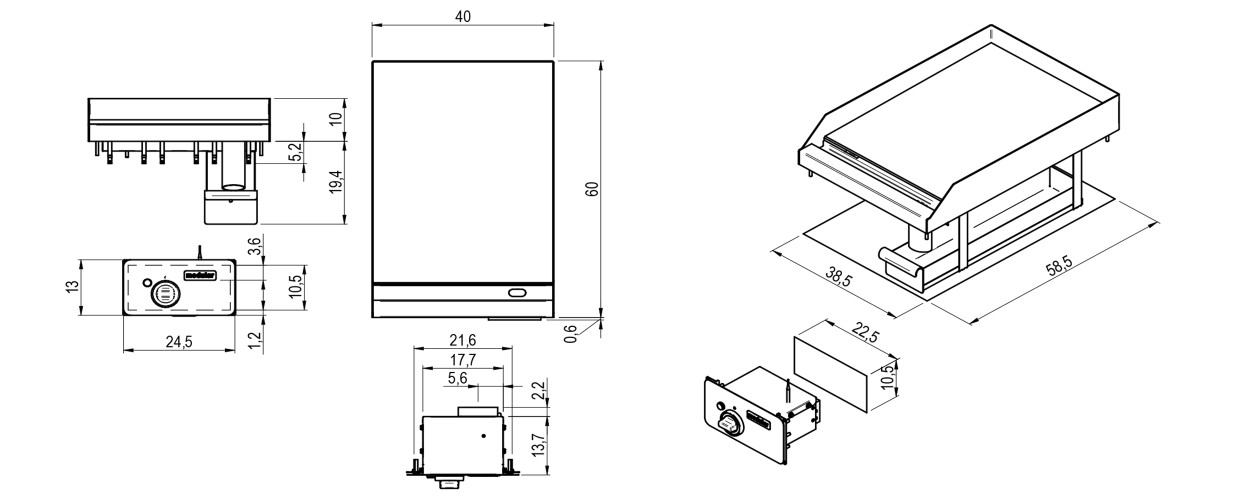Virtus drop-in electric griddle, smooth chromed plate VI6540FTECRD